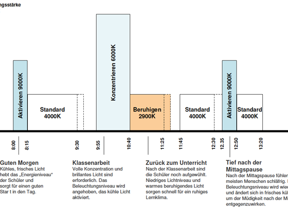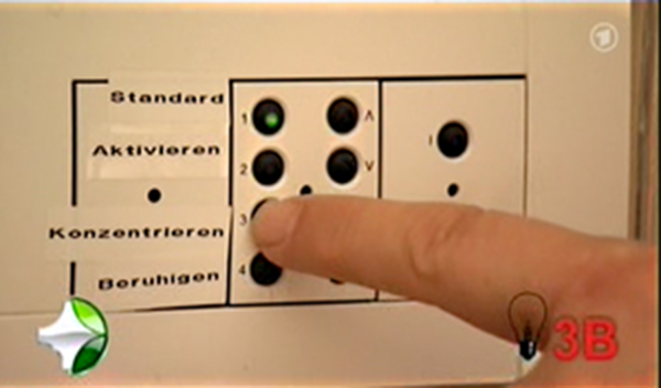 Heureka! Die Kinder waren eben 44% aufmerksamer durch das Licht geworden. Und msn kann die Wirkung präzise ein- und ausschalten, wie das untere Bild zeigt. Dazu erklärte der Professor in einer Fernsehsendung, die Wirkung wäre wie beim Trinken einer Tasse Espresso.