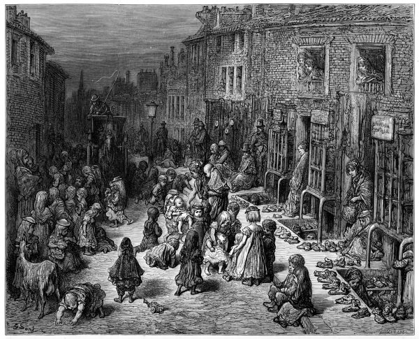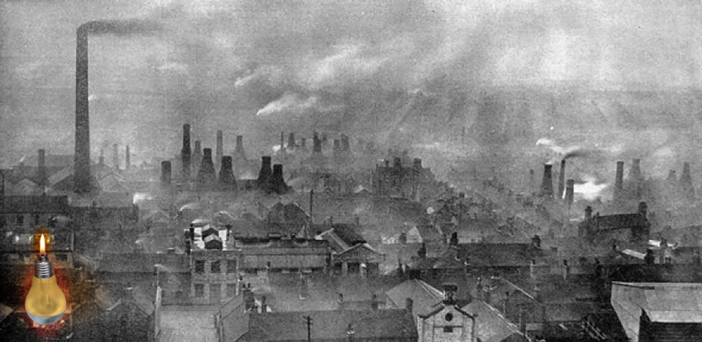 Die aufziehende Revolution der Technik verdunkelte die Städte ab 1750 zunehmend. Die Menschen sahen lange Jahrhunderte lang keine Sonne mehr, weil sie zur Tageszeit arbeiten mussten. Sie war ohnehin hinter Russ und Rauch verborgen |