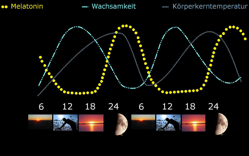 Im Jahr 2001 entdeckte man den Treiber der inneren Uhr im Auge. Dieser wird durch Licht angetrieben. Um genug Licht künstlich zu erzeugen, muss man die heutigen Beleuchtungen mindestens verdreifachen. Zudem soll man diese abends dimmen und nachts ganz abschalten. Eine Nachtschicht ohne Licht und Computer ist nicht gerade praktisch. |