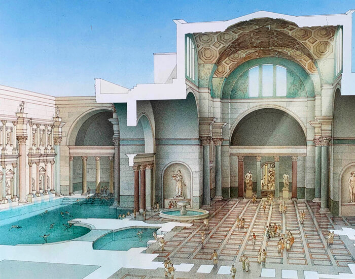 In der Antike wurde die Sonne nicht mehr als Gottheit verehrt, man hatte eine profanere Anwendung gefunden, das Solarium = Heilen mit der Sonne |