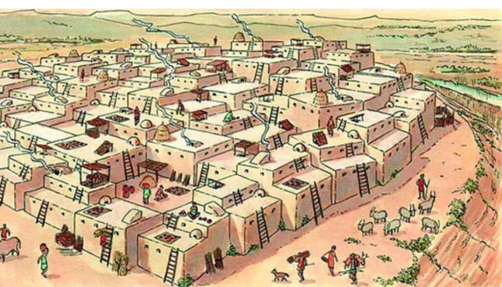 Da das künstliche Licht aber eine kümmerliche Funzel war, mussten die Menschen das Licht der Sonne in ihre Siedlungen holen. So einfach gestaltete sich das nicht, denn Menschen bauten ihre Siedlungen einst als Festungen. Hier eine Darstellung von Çatalhöyük in Anatolien. Die Siedlung war 9.500 Jahre alt. Das Leben fand weitgehend draußen statt.