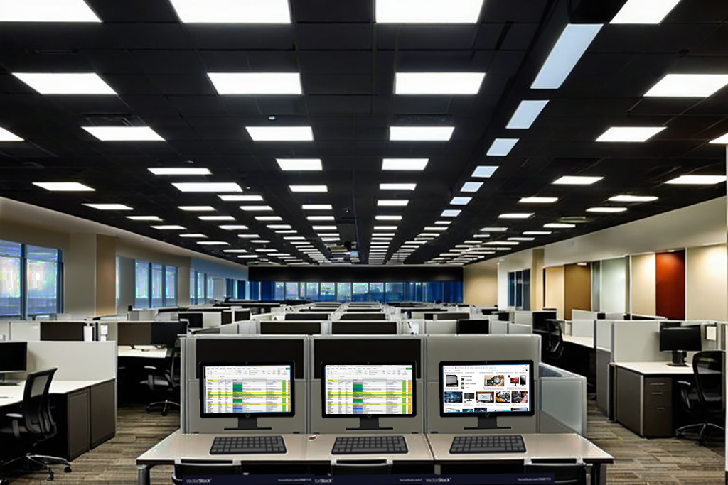 Spaßeshalber habe ich KI gefragt, was sie unter einer Bürobeleuchtung vorstellt, die man gerade modernisiert hat. Das Ergebnis könnte man in der Praxis durchaus vorfinden.