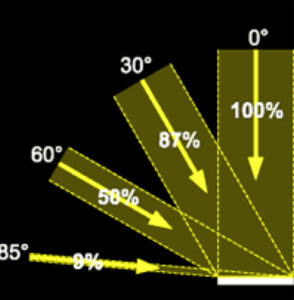 Bestimmte Berufe können mit den beiden Beleuchtungsstärken kaum was anfangen, weil diese räumlich nach einer Cosinusfunktion bewertet werden. Diese Funktion habe ich in einem Bild visualisiert, das deutlich macht, dass das schräg einfallende Licht weniger stark bewertet wird. Wer eine Tafel ablichten will, kann mit dieser Beleuchtungsstärke etwas anfangen, aber nicht alle. Diese brauchen zwar Licht aus einem Halbraum, aber kein cos-bewertetes.