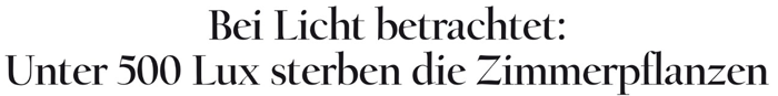 Wer viel über Licht und Beleuchtung liest, kann sich nicht des Gefühls erwehren, dass es nur eine Beleuchtungsstärke gäbe und diese die Stärke von exakt 500 lx hätte. Dieser Wert mag gut sein für den Büromenschen, aber auch für seine Zimmerpflanzen? Ein gewisser Jürgen Hermannsdörfer, seines Zeichens Vorstand des Fachverbands Raumbegrünung und Hydrokultur in Berlin, hat einen ikonischen Satz losgelassen, der die Frage beantwortet.