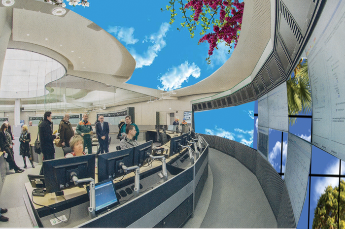 Nicht nur Firmen, die ihr Geschäft mit künstlichem Licht machen, instrumentalisieren die Natur und das Licht der Sonne, um Produkte zu verkaufen. Auch ein wissenschaftliches Institut holt scheinbar die Natur ins Haus, um ihr Konzept zu verkaufen, wie das Bild zeigt. Es trägt den Namen „Erleuchteter Arbeitsplatz“ und dürfte somit nicht so bald zu toppen sein. Den Menschen, denen das Licht des Tages genommen wurde, obwohl dies nicht unbedingt sein musste, wird ein künstlicher Sommertag vorgespielt. Allerdings endet die Simulation am Abend. Den Nachthimmel an einem Arbeitsplatz zu simulieren, dürfte niemandem leichtfallen. Eigentlich muss man dazu nur den Lichtschalter umlegen. Dann kann man aber nicht mehr arbeiten. Die abgebildeten Arbeitsplätze müssen aber 24/7 aktiv sein.