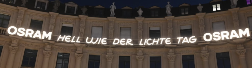 Dieser Spruch aus der Zeit des deutschen Wirtschaftswunders hat selbst den Verkauf von Osram durch Siemens und alle konventionellen Leuchtmittel überlebt und leuchtete in 2021 am Müncher Stachus in LED-Schrift.