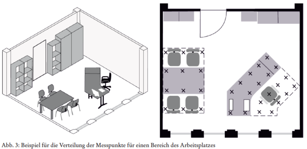 Kein Wunder, dass die Unternehmen scharf darauf gucken. Schlimmer noch: Die Bürofläche verwalten nicht die Arbeitgeber, sondern Facility Manager, die häufig sparen ohne Rücksicht auf die Arbeit. Was hat das aber mit der Beleuchtung zu tun? Leider sehr viel. Unser lieber Arbeitsminister, derzeit die liebe Frau Bärbel Bas, empfiehlt als ein Musterarbeitsplatz für einen Büromenschen dieses: